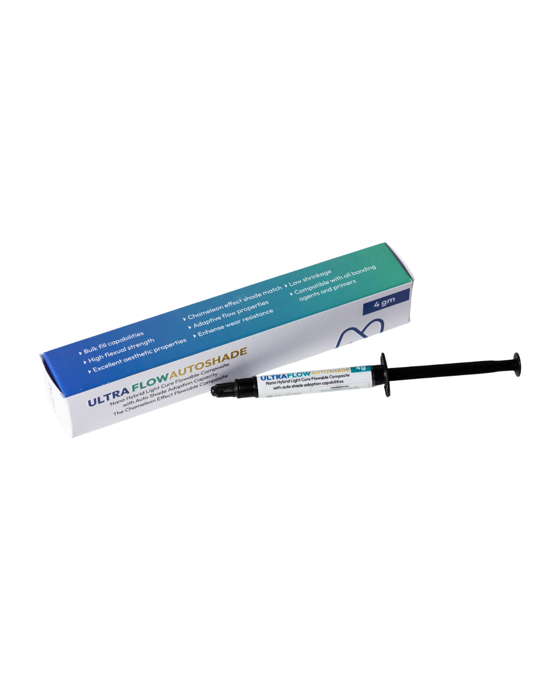 Ultra Flow Autoshade is a light-cured, radiopaque, nano-hybrid flowable composite with chameleon/blending effect, designed to match multiple tooth shades using a single universal shade. Its low viscosity allows precise placement, excellent wetting, and adaptation to margins with minimal void formation.